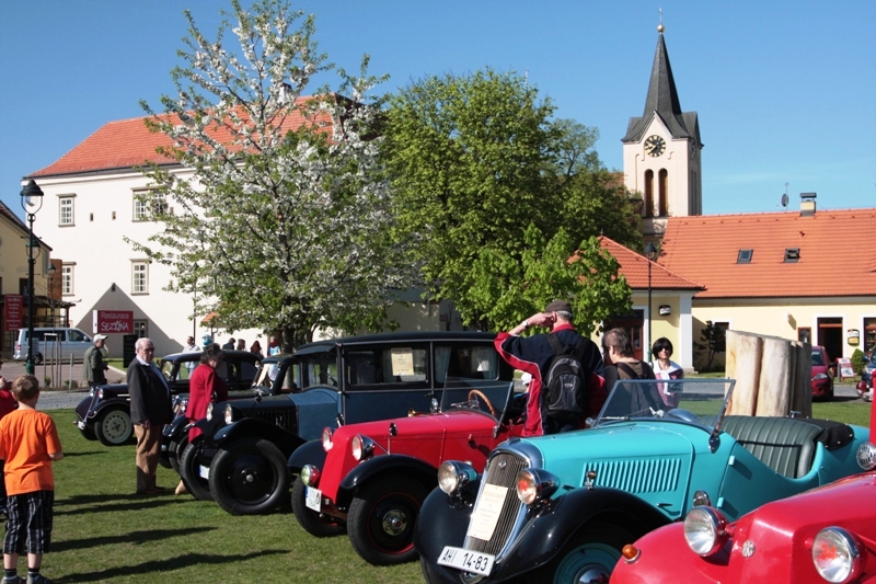 Nejstarší vůz byl Dodge Tourer z roku 1924. Obohacením celé akce byla i výstava vozů Aero, zaměřená k výročí 80 let jízdy Bohumila Turka na trase Praha - Brno, kdy za 30 dní ujel úctyhodných 30.000 km. Všechna vozidla si diváci mohli do detailu prohlédnout a odborný komentář moderátorů akce prozradil mnohé zajímavosti. Ale hlavně, po dlouhém přemlouvání přijal pozvání organizátorů také náš čestný host pan Nicolas Cheval z francouzského Saint Emilionu. Možná jste si ho na nádvoří Chvalské tvrze ani nevšimli, nenápadný starý pán v džínách a kostkované košili, spíše plachý než nějaký světák, ale pro ty, kteří vědí víc, to byl zlatý hřeb celé akce. A že jste si ho tam nevšimli? No vždyť to říkám, nenápadný.